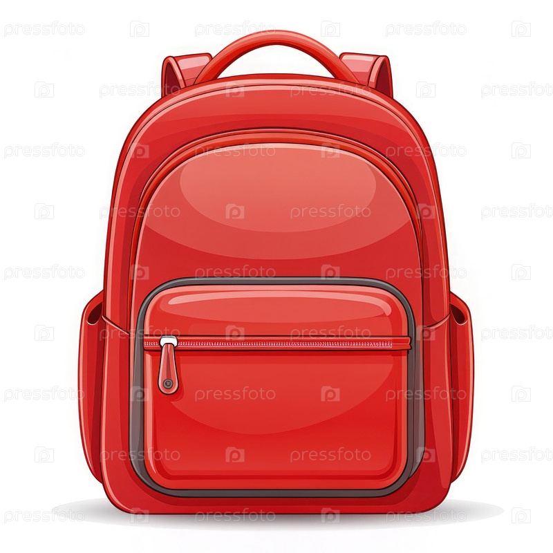 Красный школьный рюкзак с передним карманом на белом фоне