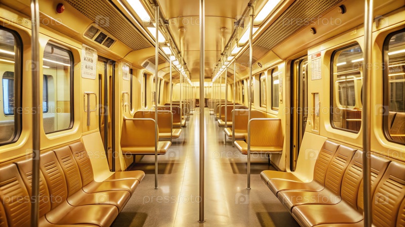 Интерьер тихого поезда метро в непиковые часы