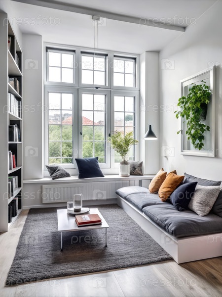 Яркая и просторная гостиная с уютными местами для сидения и обильным естественным светом