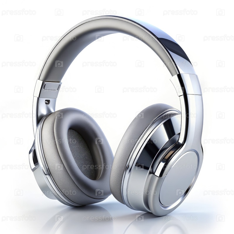 Футуристические серебряные наушники с гладкой изогнутой формой на белом фоне