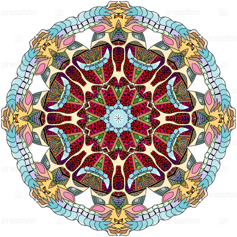 Декоративные круглые орнаменты. Необычная форма цветка. Восточный вектор, шаблоны антистрессовой терапии. Элементы дизайна ткачества. Логотипы йоги Вектор