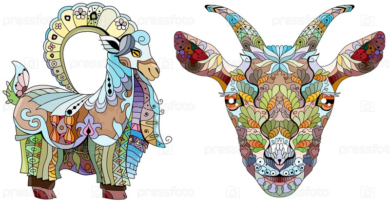 Козы стилизованы для дизайна футболок, татуировок и других украшений
