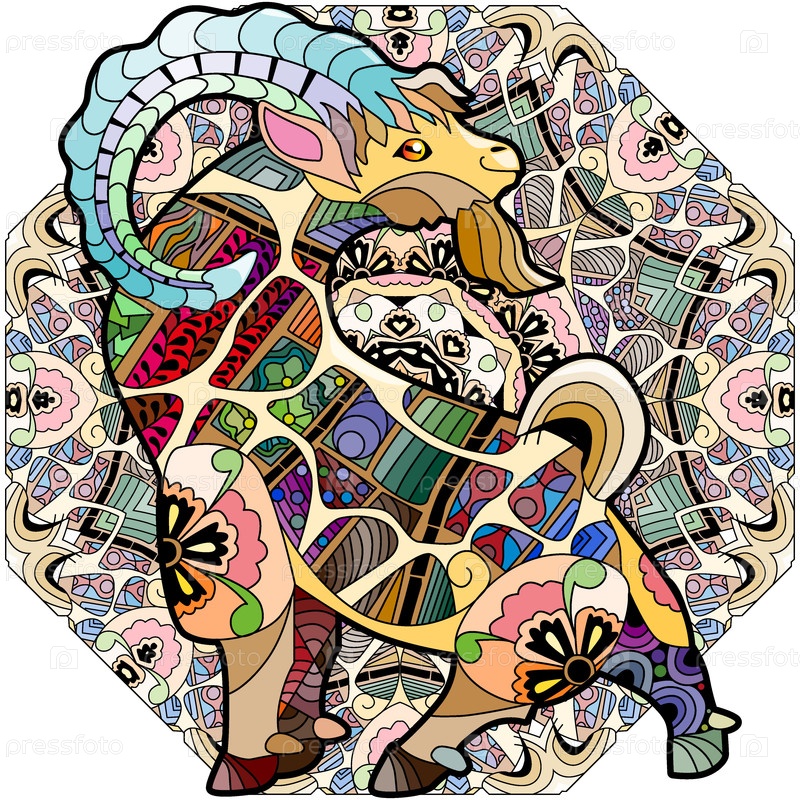 Коза стилизованная на мандале для дизайна футболки, для татуировки и других украшений