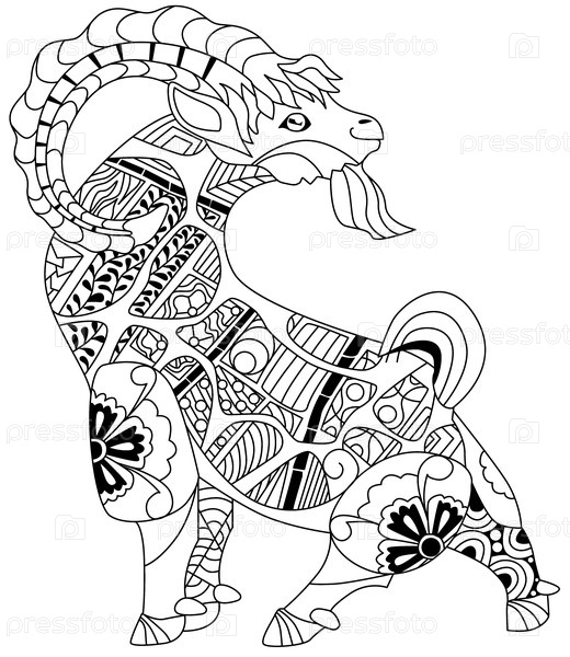 Коза в стиле для дизайна футболки, для окраски, для татуировки и других украшений
