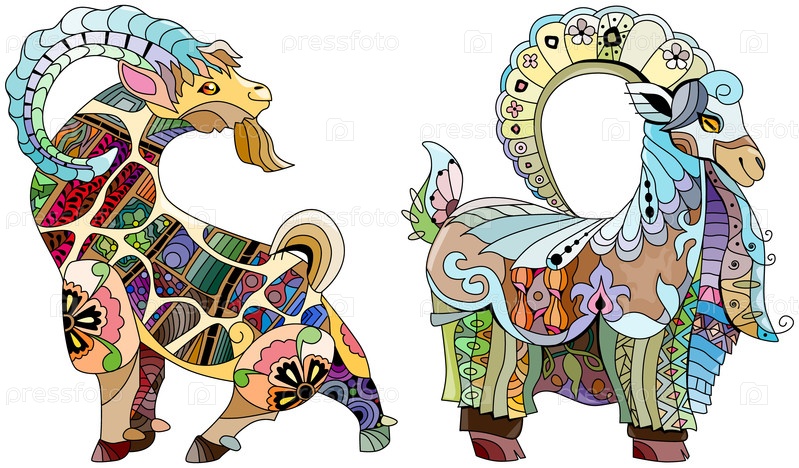 Козы стилизованы для дизайна футболок, татуировок и других украшений