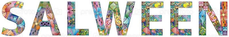 Ручно нарисованный художественный дизайн. ручная иллюстрация слова Salween для футболок и других украшений.Salween - река в Юго-Восточной Азии, протекающая с Тибетского плато на юг в Андаманское море