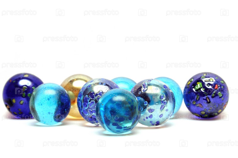Голубые стеклянные шары на белом фоне