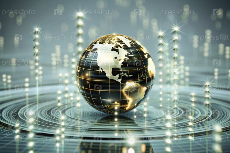 Реалистичная визуализация золотого шара, символизирующая глобальную связь и инновации