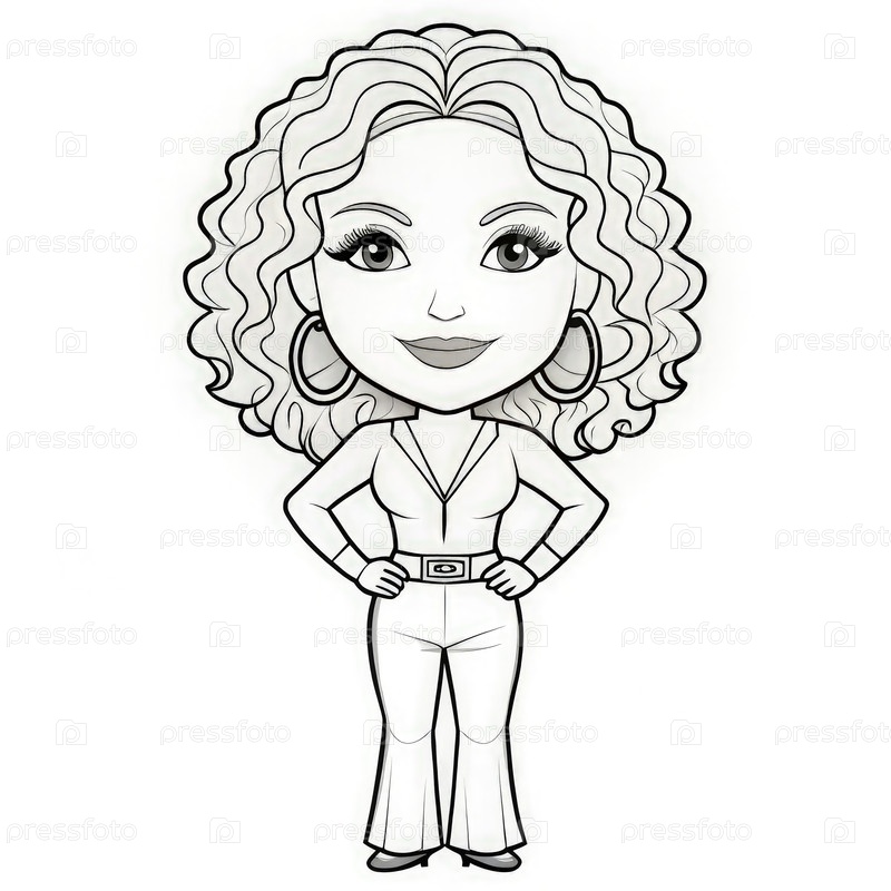 Мультфильмовый персонаж, вдохновленный Глорией Эстефан с кудрявыми волосами и стильным нарядом