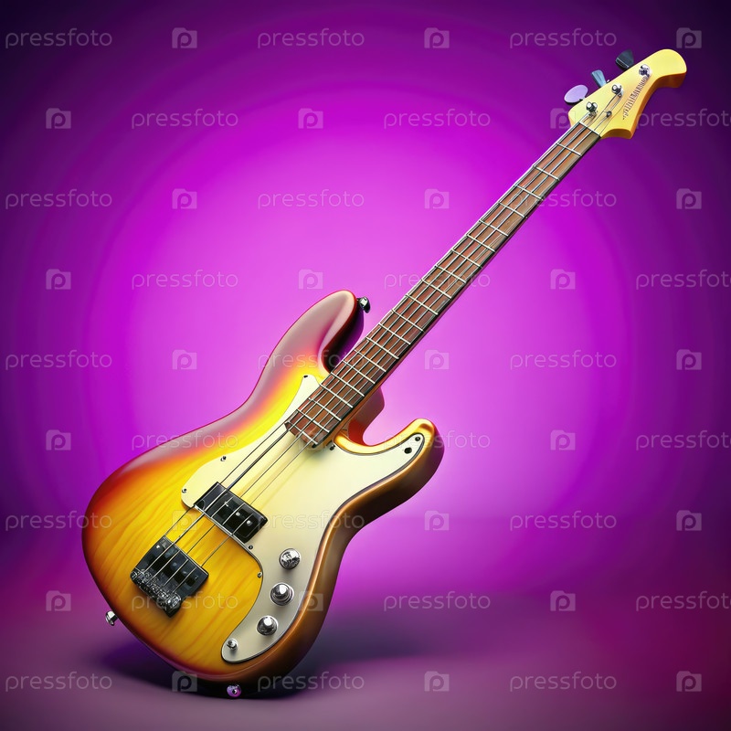 Электрическое базо на дисплее на ярко-фиолетовом фоне в студии