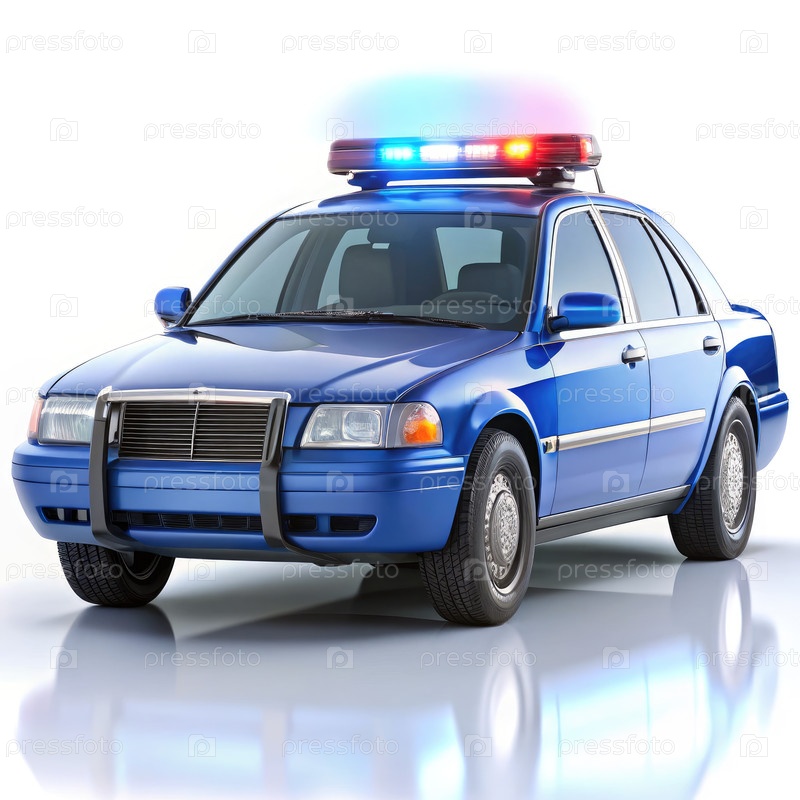 Голубая полицейская машина с мигающими огнями на дисплее в чистой среде