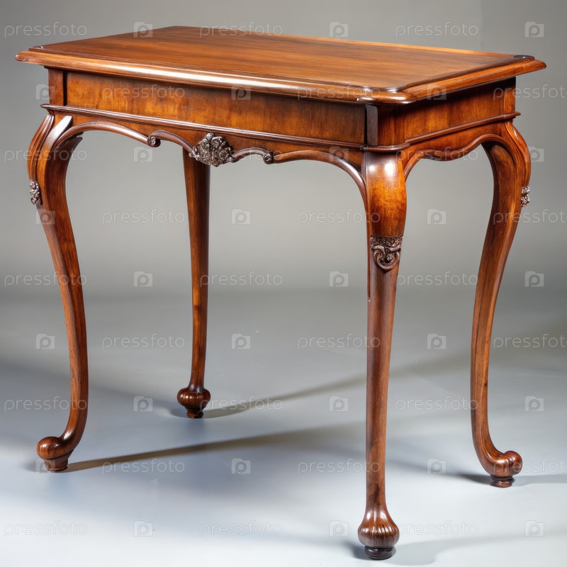 Кабриоле столик с двумя ногами в богатой деревянной отделке, подчеркивающей элегантный дизайн