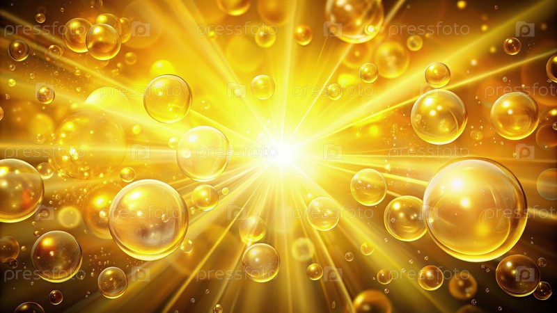 Небольшие желтые мыльные пузыри, плавающие на ярко-желтом фоне