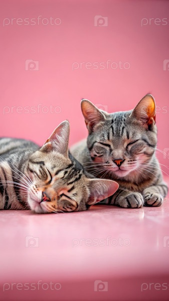 Две очаровательные кошки, отдыхающие вместе на мягкой поверхности с пастельным фоном
