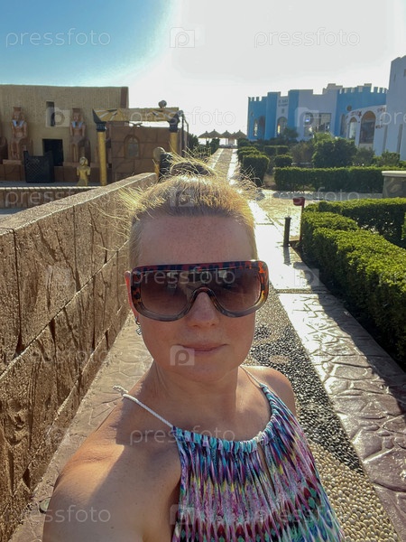 Портрет женщины в солнцезащитных очках в отеле в Египте
