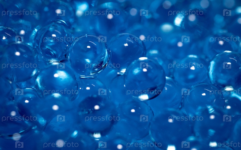 Макросъемка прозрачных синих шариков гидрогеля, заполняющих весь кадр