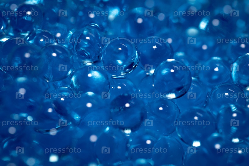 Макросъемка прозрачных синих шариков гидрогеля, заполняющих весь кадр