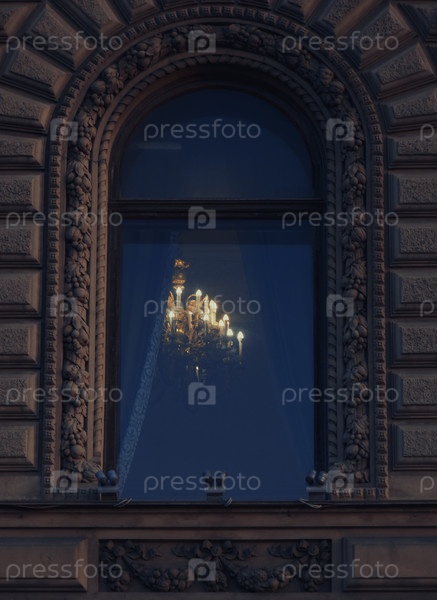 Старинная люстра со свечами. Окно. Санкт-Петербург