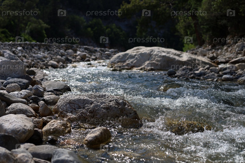 Река в горном ущелье в солнечный день