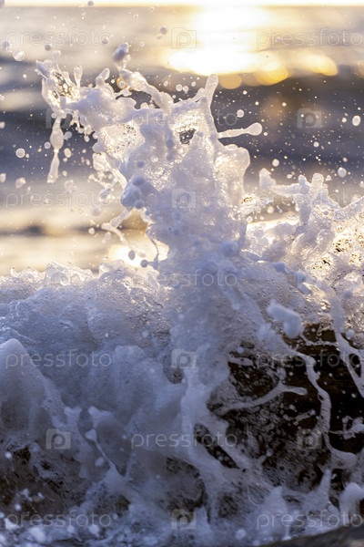 Брызги разбившихся волн в лучах заката