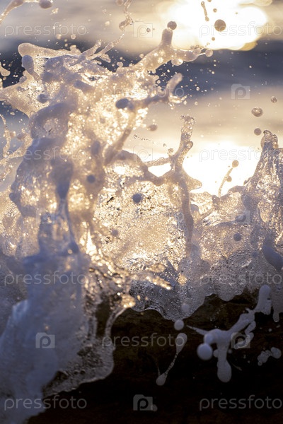 Брызги разбившихся волн в лучах заката