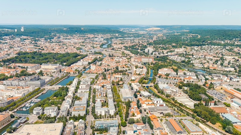 Нанси, Франция Панорама центральной части города Лето в солнечный день с воздушным видом