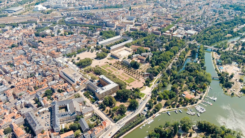 Метц, Франция. Эспеланадный сад. Вид на исторический центр города. Лето, солнечный день, Aerial View
