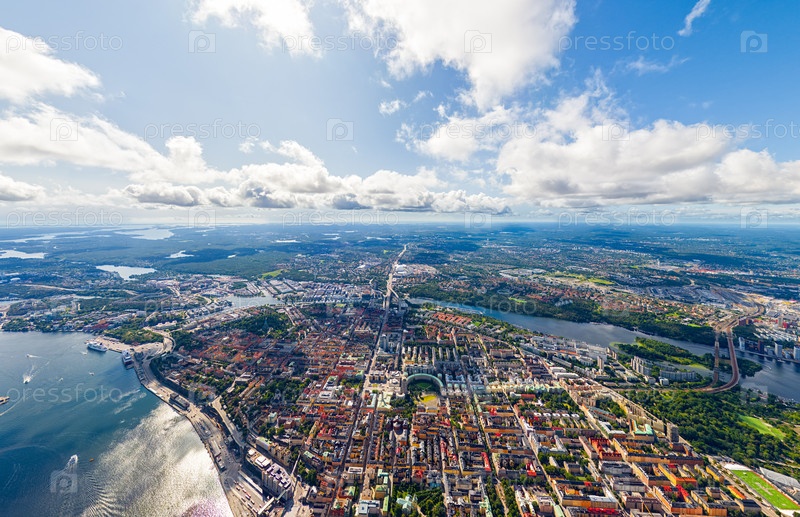Стокгольм, Швеция Панорама города летом в пасмурную погоду