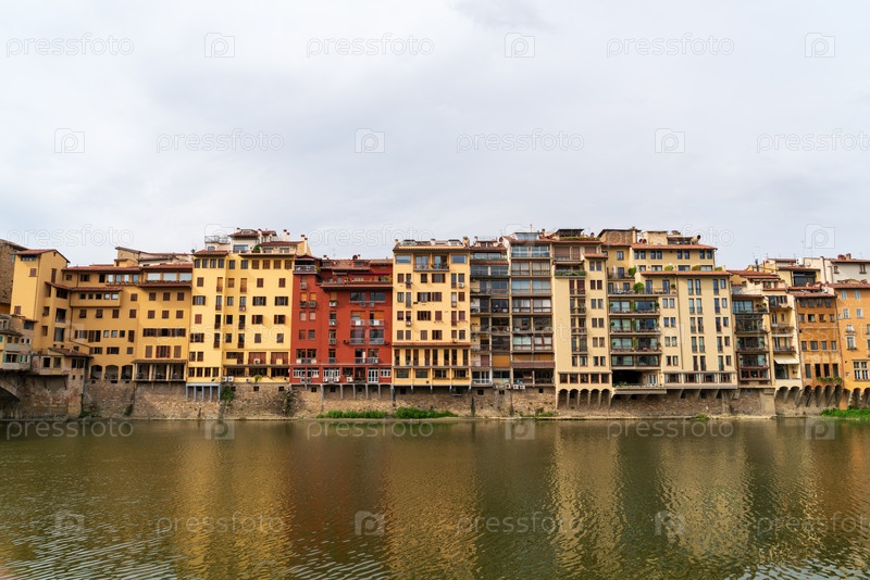 Флоренция, Италия Дома на набережной реки Арно Летний день