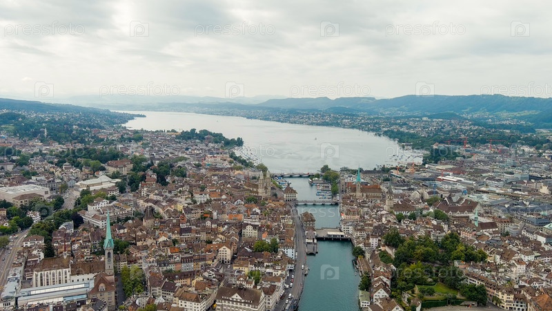 Панорама города с видом на озеро Цюрих Летний день, Aerial View