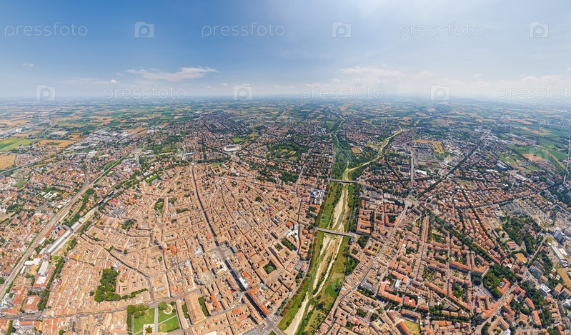 Парма, Италия Исторический центр Панорама города в летний день Солнечная погода Вид с воздуха