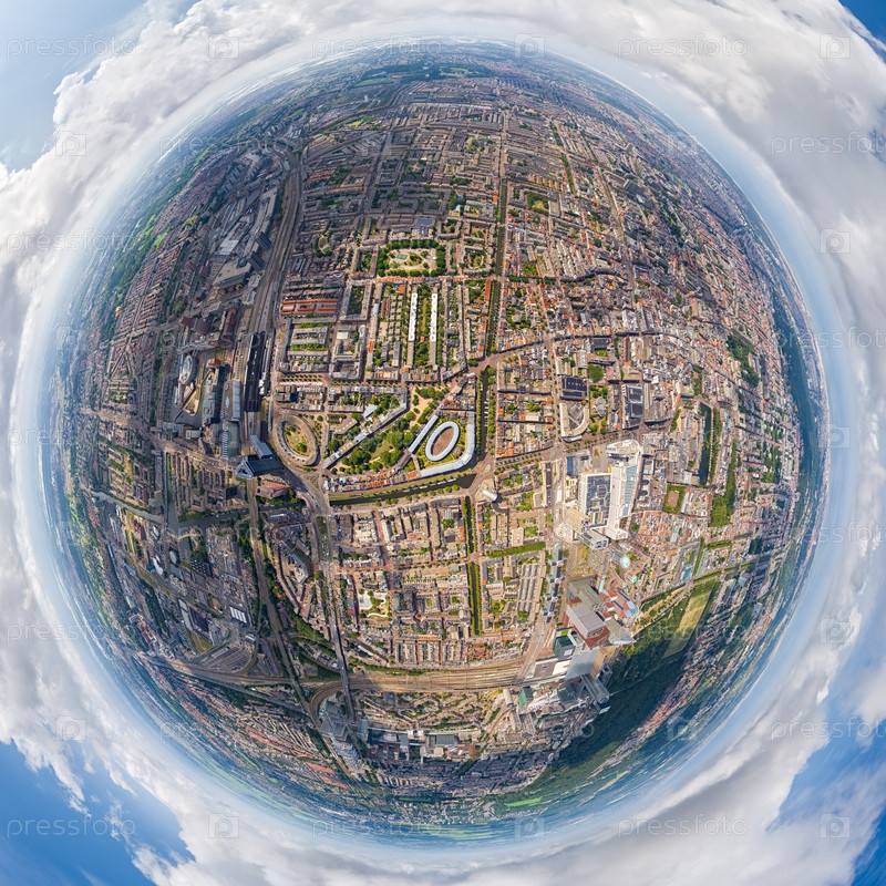Гаага, Нидерланды Панорама летнего города в облачной погоде 360 градусов панорамный астероид