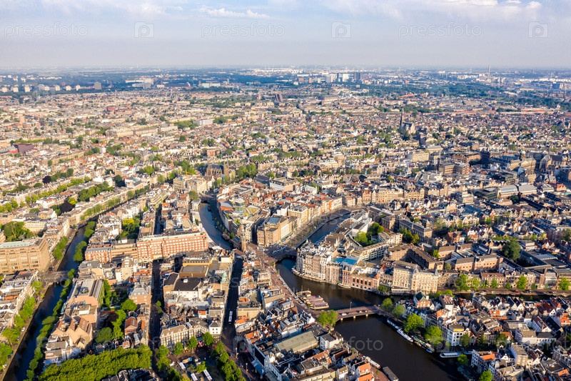 Амстердам, Нидерланды Панорама города с воздуха Лето