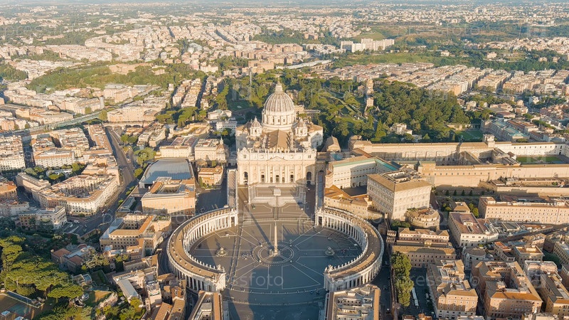Рим, Италия. Вид на Ватикан. Базилика Сан-Петро, Пьяцца Сан-Петро. Полет над городом. Утренние часы, Aerial View
