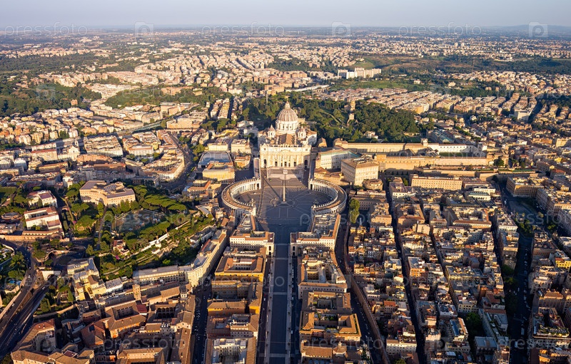 Рим, Италия. собор святого Петра - базилика Сан-Петро. панорама города летом утром. солнечная погода. вид с воздуха