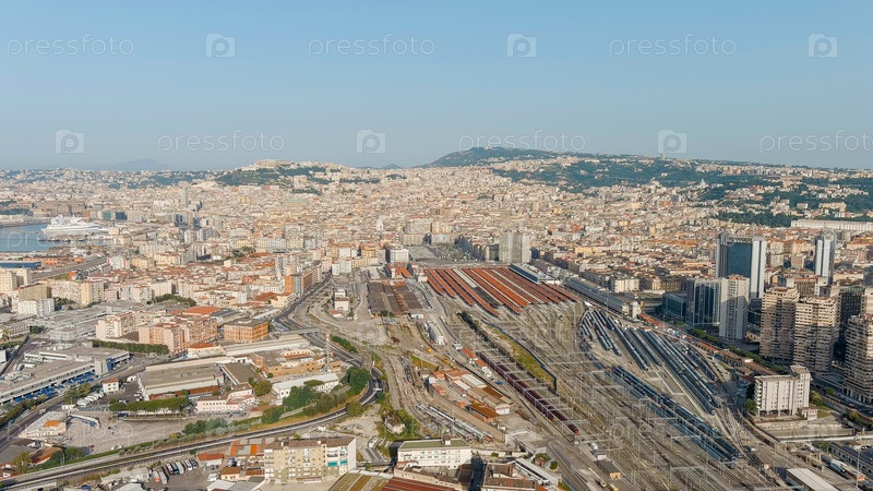 Неаполь, Италия.Панорама города с видом на железнодорожный вокзал.День, Aerial View