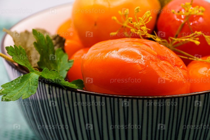 Натюрморт. Квашеные помидоры с зеленью