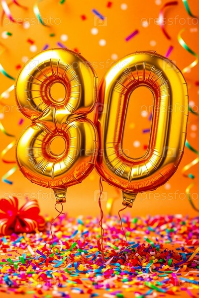 Гелиевый день рождения шарик формы номер восемьдесят, золотые буквы фигура 80 праздник праздничный фон декор