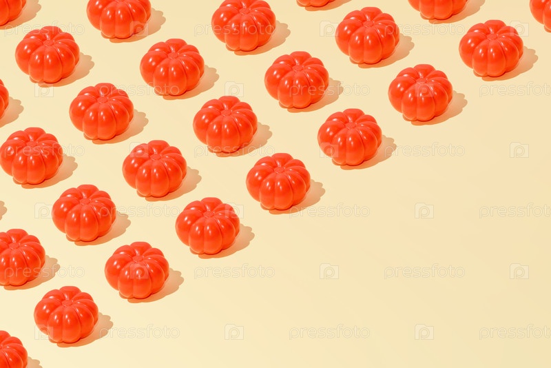 Творческий летний абстрактный томатный рисунок плоской прослойки на пастельно-желтом фоне минимализм с копировальным пространством