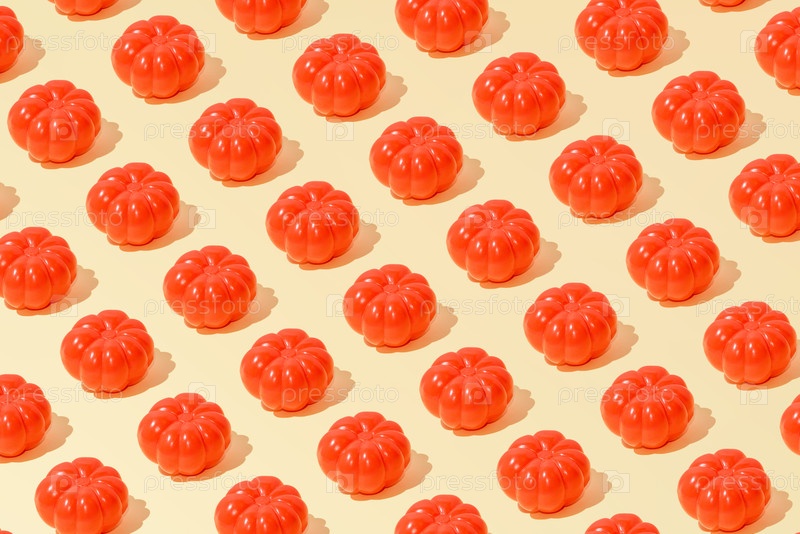 Творческий летний абстрактный томатный рисунок с плоским слоем на пастельно-желтом фоне минимализма