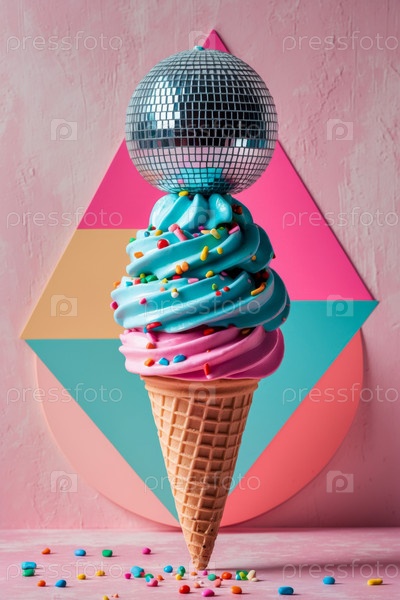 AI Generative Abstract необычный творческий десерт искусство мороженое декоративная радуга блеск фантастическая еда