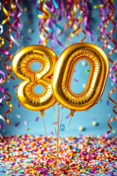 Гелиевый день рождения шарик формы номер восемьдесят, золотые буквы фигура 80 праздник праздничный фон декор