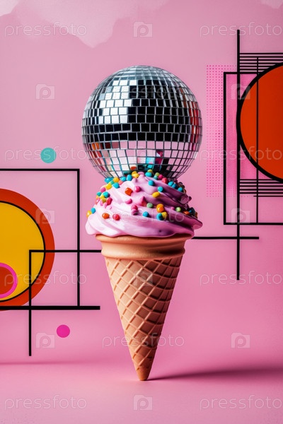 AI Generative Abstract необычный творческий десерт искусство мороженое декоративная радуга блеск фантастическая еда