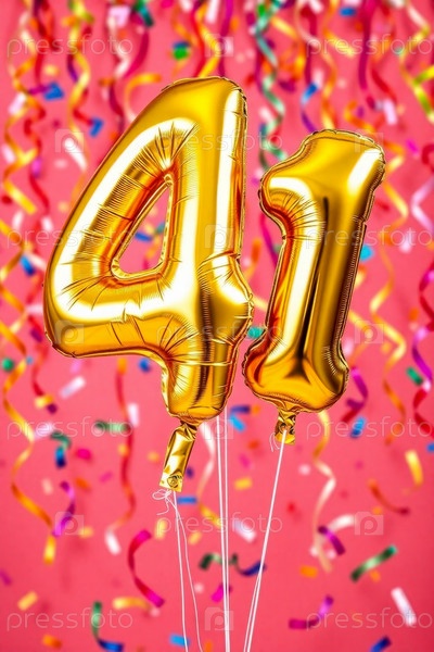 Гелиевый день рождения шарик формы номер сорок один, золотые буквы фигура 41 праздник праздничный фон декор