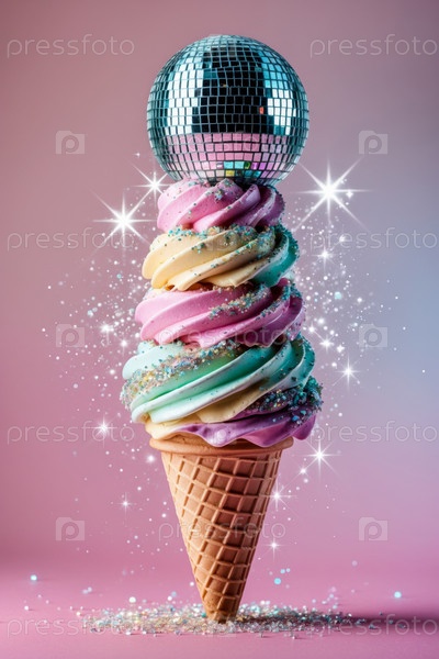 необычный творческий десерт искусство мороженое декоративная радуга блеск фантазия AI Generative