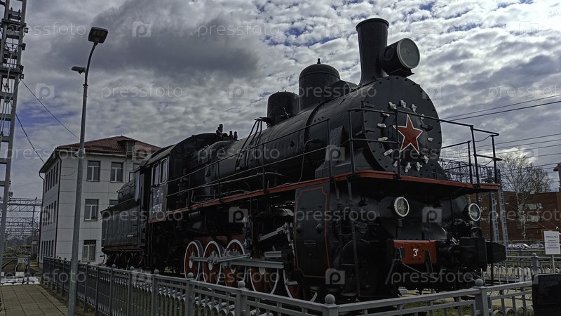 Памятник.Паровоз.Апрель