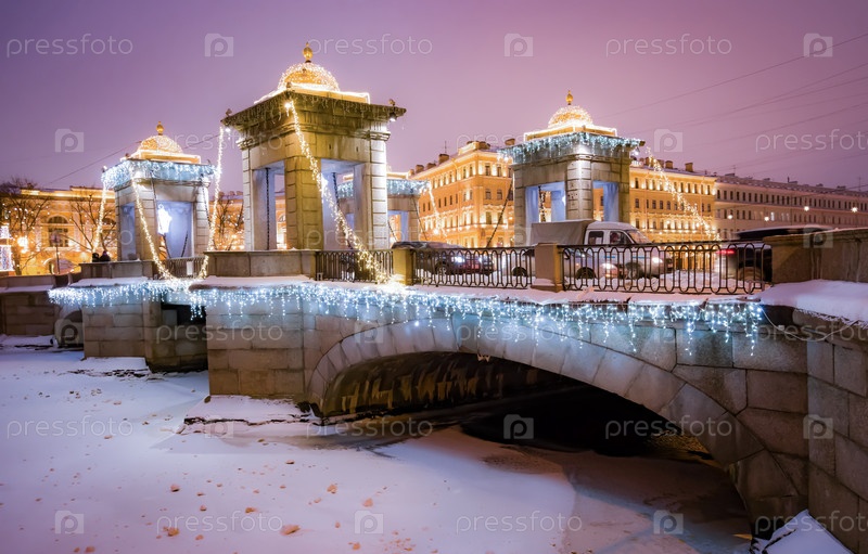 Ночной, зимний Санкт-Петербург. Мост Ломоносова