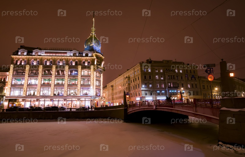 Улицы ночного Санкт-Петербурга зимой