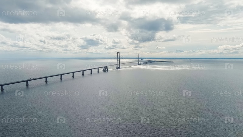 Корсер, Дания. Мост Большого пояса (Storebålt). облачная погода с пробелами, Aerial View