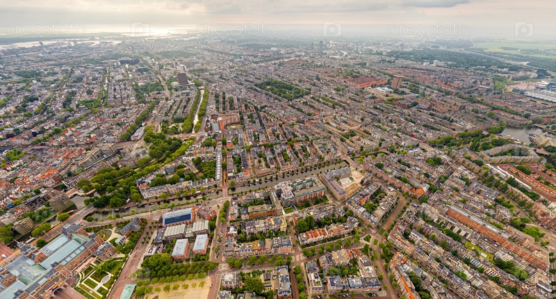 Амстердам, Нидерланды Панорама города летом утром в пасмурную погоду
